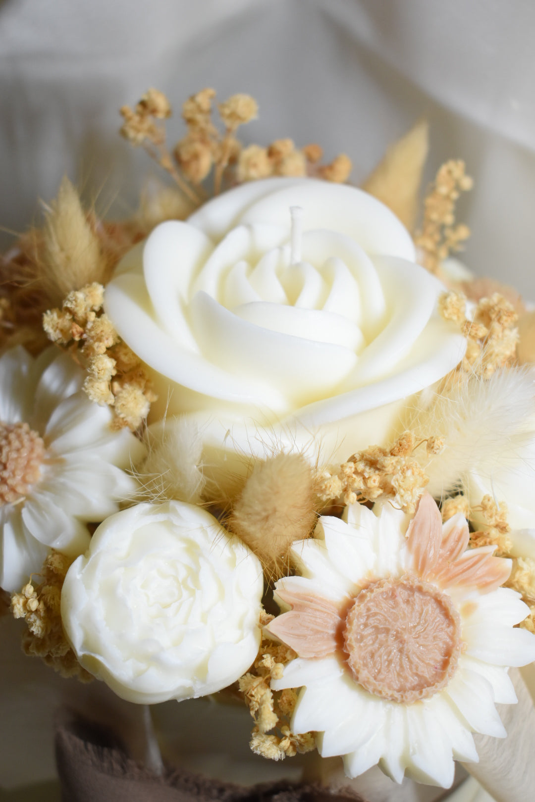 Questo bouquet di candele è l'accessorio perfetto per creare l'atmosfera ideale in qualsiasi stanza. Le candele più grandi possono essere facilmente accese e bruciate, mentre le più piccole possono essere utilizzate per profumare i cassetti o per bruciaessenze. Inoltre, è possibile personalizzare il boquet per adattarlo al tuo stile unico. Crea un'esperienza rilassante e personalizzata con questo boquet di candele.