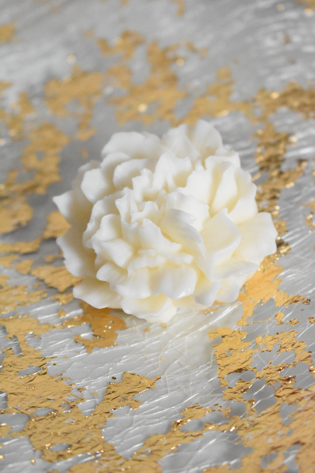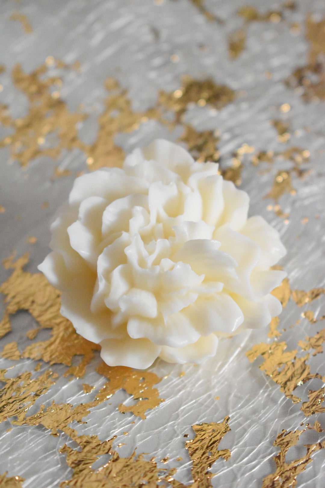 Candela profumata a forma di garofano, realizzata con cura artigianale. Ogni petalo è sapientemente definito per catturare l'eleganza naturale del fiore, creando un'opera decorativa che profuma gli ambienti con delicatezza.