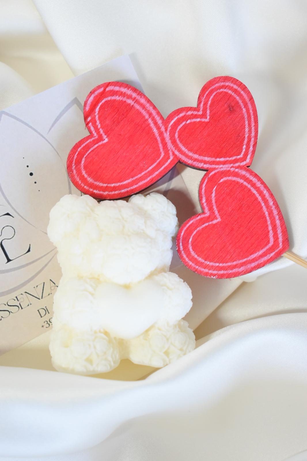 Il nostro incantevole Orsetto con rose è il perfetto connubio di tenerezza e romanticismo. Realizzato con una candela profumata, questo adorabile orsetto sarà un'aggiunta deliziosa al tuo spazio. Goditi il suo caldo bagliore e il suo dolce profumo di rose mentre senti il tuo cuore sciogliersi. Fai di ogni momento una dolce occasione con il nostro Orsetto con rose.